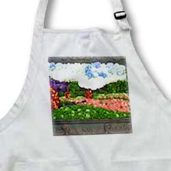 Painting with Flowers Apron is commercial quality product. Whether it's put to use in a restaurant or home, this apron will always help keep you clean. 100% cotton with Teflon finish for added protection. 1" wide neck and waist ties, adjustable neck strap for full and medium length aprons.