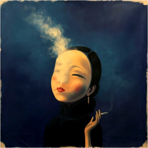 Art of China- Shanghai Woman on Blue with Smoke -Contemporary Asian Art Oil Painting- Hand Painted Review