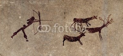 Wallmonkeys Peel and Stick Wall Decals - Prehistoric Hunter - Cave Painting Reproduction - 24"W x 11"H Removable Graphic Feature
