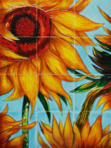 These are hand carved and hand painted ceramic tiles of a detail view of the famous Van Gogh painting, Sunflowers . This mural art created by 12 six inch tiles can be added to any back splash or tile project in your home. They will arrive in a decorative box set that you might even give as a great gift for that home improvement project lover you know. Ceramic tile has been a traditional means of decorating back splashes in kitchens and bathroom walls for many years. Now add beautiful art to any bathroom or kitchen wall with these hand carved/hand painted accent pieces. Vincent Van Gogh's restless spirit and depressive mental state fired his artistic work with great joy and, sadly, equally great despair. Known as a prolific Post-Impressionist, he produced many paintings that were heavily biographical. This work of art has the same emotions and beauty as the original by Van Gogh. Why not grace your home with this reproduced masterpiece? It is sure to bring many admirers!