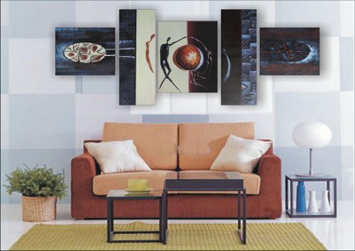 Beautiful original modern abstract art handpainted on high quality canvas. Each piece is stretched and wrapped on wooden frames. It is ready to hang, no additional frame required.Redefine your living style with this unique and elegant pieces of art created by international artist. Size Approximately: Panel 1, 5: L12" x H20" x D1.2", Panel 2, 4: L12" x H32" x D1.2", Panel 3: L20" x H24" x D1.2"
