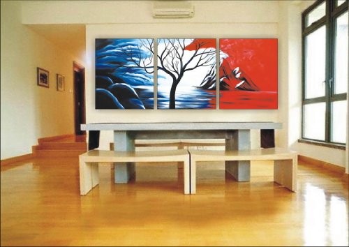 Beautiful original modern abstract art handpainted on high quality canvas. Each piece is stretched and wrapped on wooden frames. It is ready to hang, no additional frame required.Redefine your living style with this unique and elegant pieces of art created by international artist. Overall Size Approximately: L60" x H24" x D1.2" (Each Panel: L20" x H24" x D1.2")